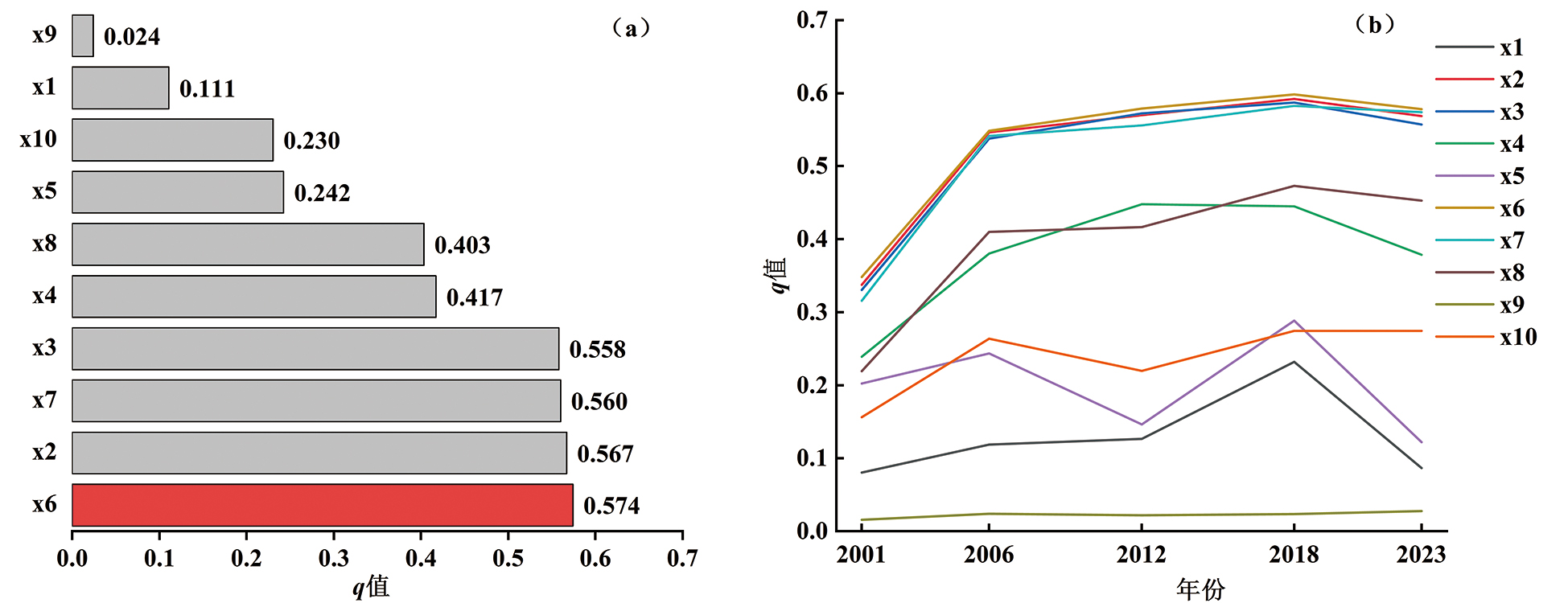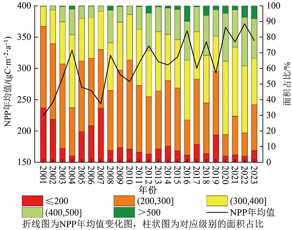 摘要: 探究子牙河流域植被净初级生产力(NPP)的时空演变规律及其驱动因素,厘清该区域的碳平衡状况,对促进生态环境可持续发展具有重要意义。基于2001—2023年MODIS NPP数据,综合考虑气候、土壤、地形、人类活动等因子,采用Theil-Sen趋势分析、Mann-Kendall显著性检验、Hurst指数等方法分析植被NPP的时空变化特征,使用参数最优地理探测器模型定量探测不同因子及其交互作用对植被NPP变化的影响。结果表明:(1)研究期内子牙河流域NPP年均值在224.86~371.21 gC·m-2·a-1波动,多年NPP值呈增加趋势,增速为4.53 gC·m-2·a-1。(2)NPP年均值高于400 gC·m-2·a-1的区域主要集中在流域西部山区,NPP年均值低于300 gC·m-2·a-1的区域主要分布于流域东部平原区。(3)研究期内年NPP变化以极显著上升和不显著上升为主,面积占比分别为67.21%和18.25%。呈下降趋势的区域面积占比为2.03%,零星分布于各城区周围,这与城市化进程加快有关。未来植被NPP变化以反持续性为主,反持续性上升面积占比为88.30%。(4)土壤温度、气温、高程、潜在蒸散发是植被NPP空间分异的主要影响因子,同时,具有双因子交互作用增强的特性,交互作用更好的解释了植被NPP的空间分异。研究结果有利于完善子牙河流域植被净初级生产力变化特征及其影响机制,可为该区域的固碳减排和生态保护提供科学参考。