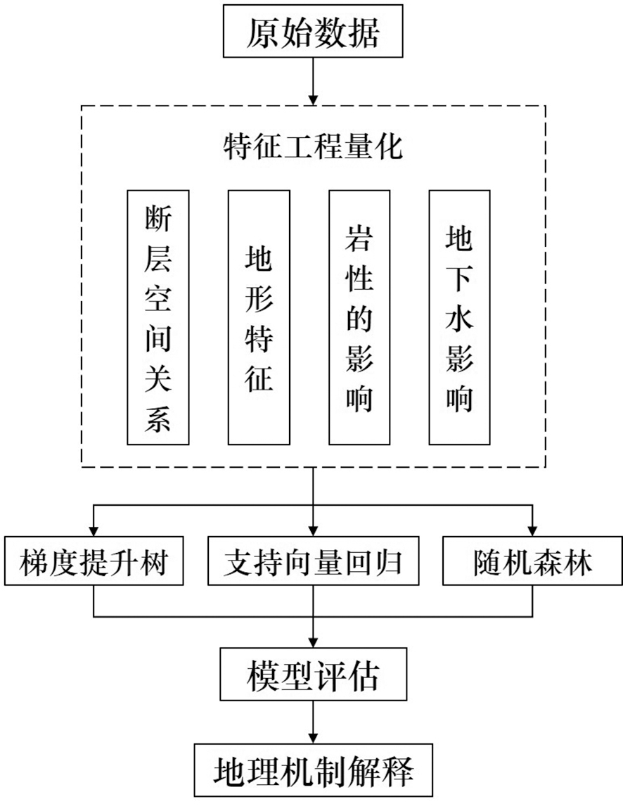 岩溶裂隙发育具有高维、非线性及空间异质性特征,如何刻画裂隙的空间展布是岩溶发育规律研究的难点。以多源数据驱动的机器学习建模方法可以有效捕捉裂隙系统中隐含的非线性、非连续的特征,从而显著地提高裂隙识别与刻画的效率与精度。本研究以北京市房山张坊地区为研究对象,基于翔实的野外裂隙实测数据,系统融合了地表地形信息、区域构造背景、地层岩性分布以及地下水位等多源数据集。利用机器学习框架构建了一套综合性的定量化特征体系,该体系涵盖了断层空间影响、地层岩性组合特征、地下水埋深变化以及高精度地形衍生属性(如坡度、曲率等)等多个维度的指标。重点研究对比了支持向量回归、极致梯度提升树及随机森林这三种机器学习方法,旨在预测研究区内岩溶裂隙的发育与空间分布情况。结果表明,基于随机森林构建的预测模型表现最为优异。该模型的裂隙密度、节理走向与倾角的模拟结果与实测统计数据最符合,模型表现最为稳健,具有良好的泛化能力和方法适用性,在表达多期次裂隙发育等复杂地质过程方面具有独特优势。本研究的结果揭示,将数据驱动模型与深入的地质机理分析相融合,是突破复杂岩溶系统定量化表征与预测难题的一条有效途径。