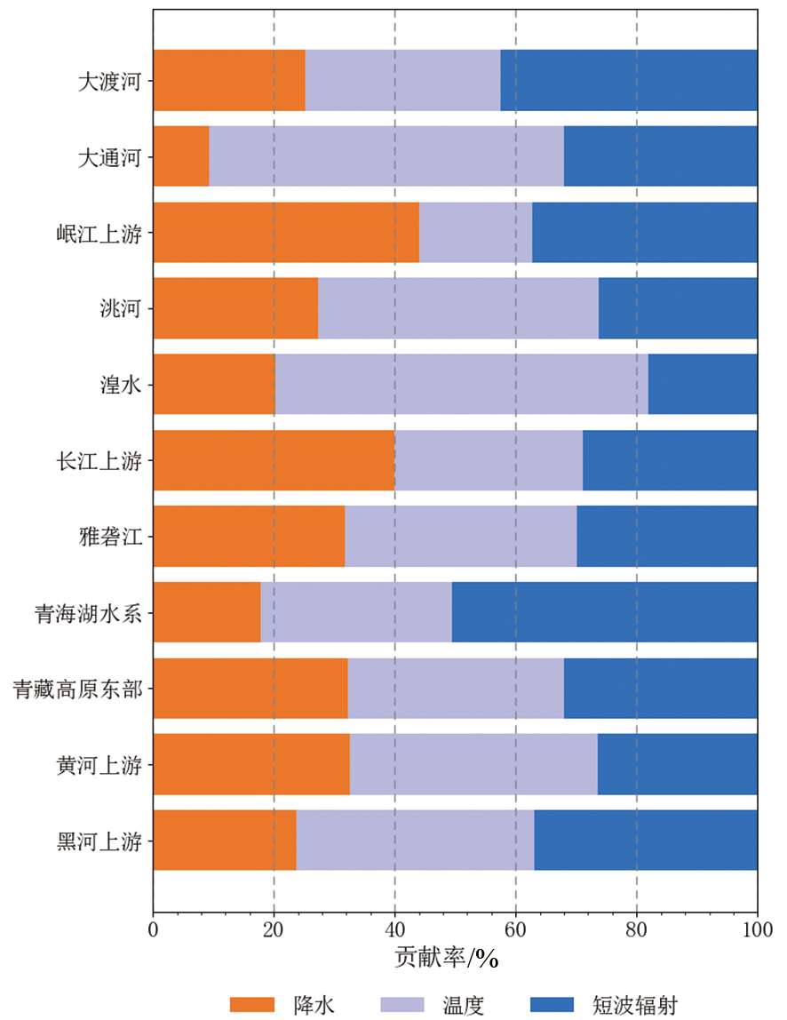 图5 气候因素对青藏高原东部及子流域地下水储量异常的区域平均贡献率