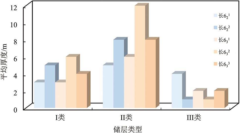 Fig.9 Histogram showing the average thickness of different types of matrix reservoirs in the Chang ${{6}_{3}}^{3}$ small layer to Chang ${{6}_{2}}^{1}$ small layer in the dense well area of the Heshui area